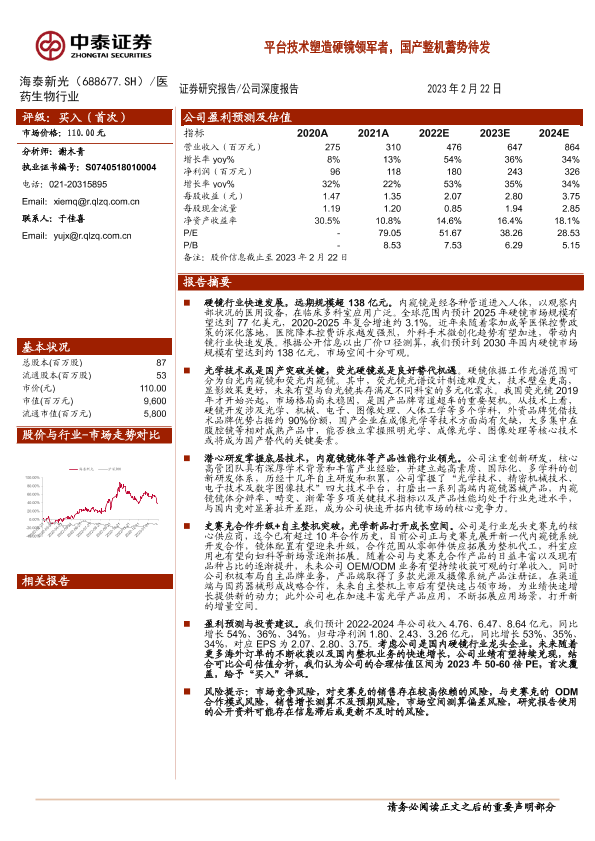 【中泰证券】【20230222】平台技术塑造硬镜领军者,国产整机蓄势待发-22页