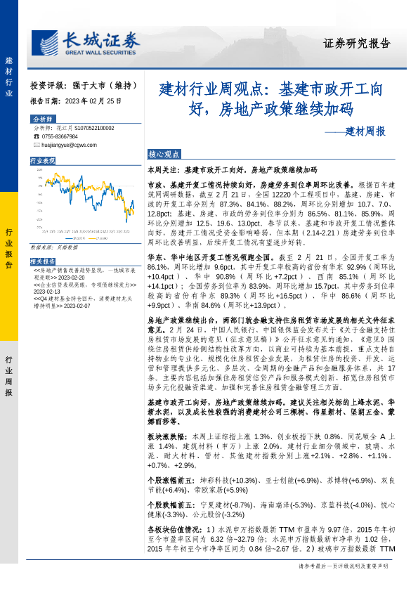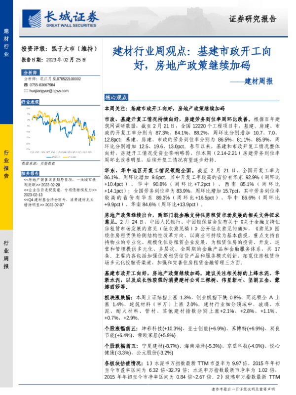 【长城证券】【20230225】建材行业周观点:基建市政开工向好,房地产政策继续加码-19页
