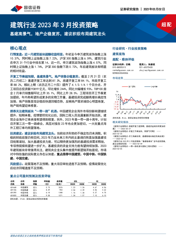 【国信证券】【20230302】建筑行业2023年3月投资策略:基建高景气,地产企稳复苏,建议积极布局建筑龙头-15页