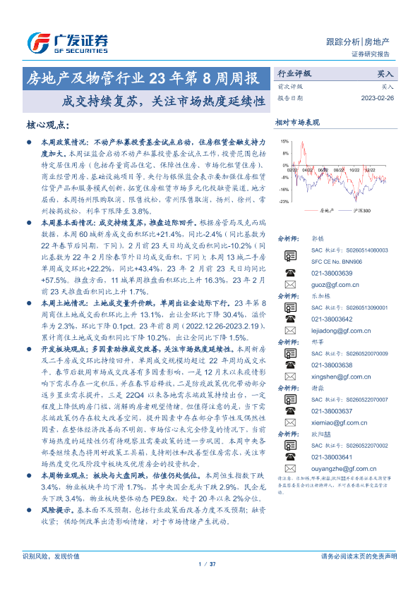 【广发证券】【20230226】房地产及物管行业23年第8周周报:成交持续复苏,关注市场热度延续性-37页