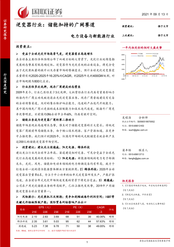 【国联证券】【20210913】电力设备与新能源行业:逆变器行业,储能加持的广阔赛道-42页