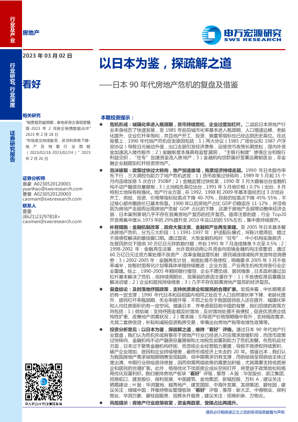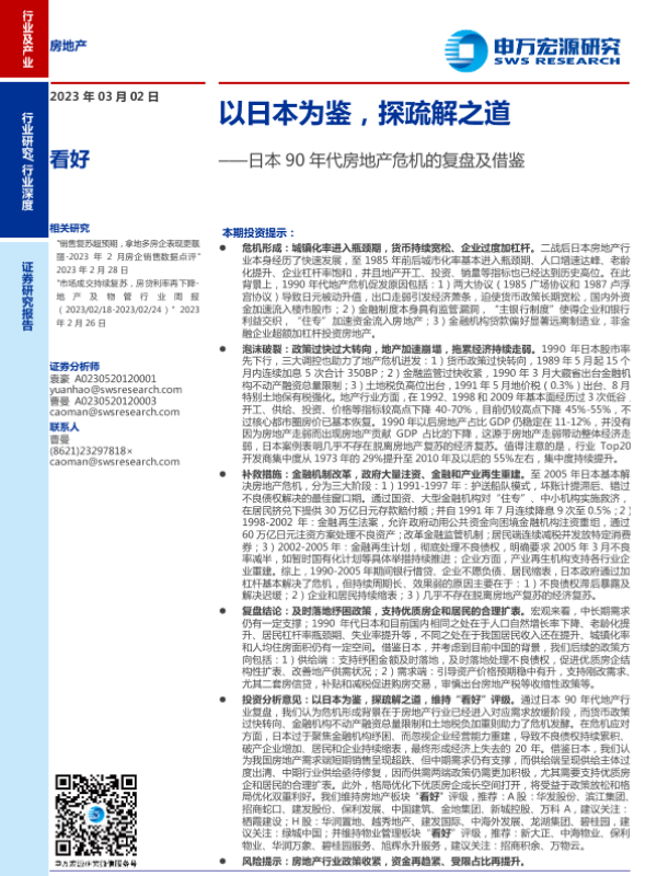 【申万宏源】【20230302】房地产行业日本90年代房地产危机的复盘及借鉴:以日本为鉴,探疏解之道-44页