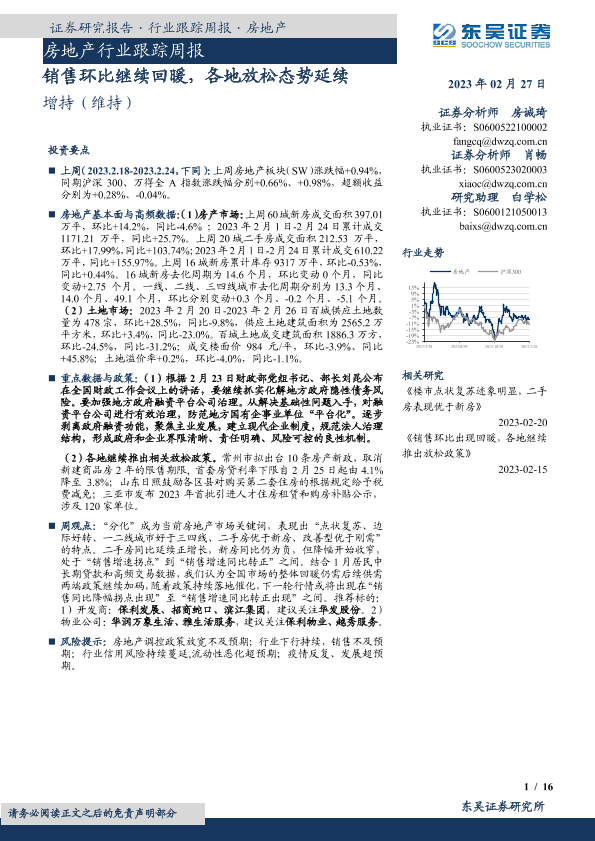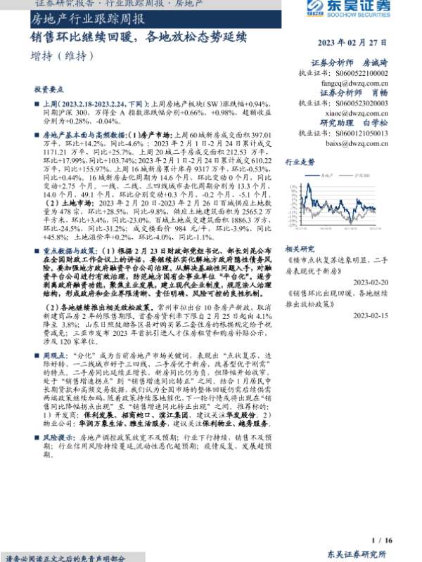 【东吴证券】【20230227】房地产行业跟踪周报:销售环比继续回暖,各地放松态势延续-16页