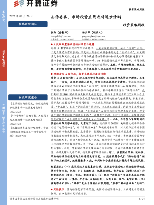 【开源证券】【20230226】投资策略周报:去伪存真,市场投资主线或将逐步清晰-24页