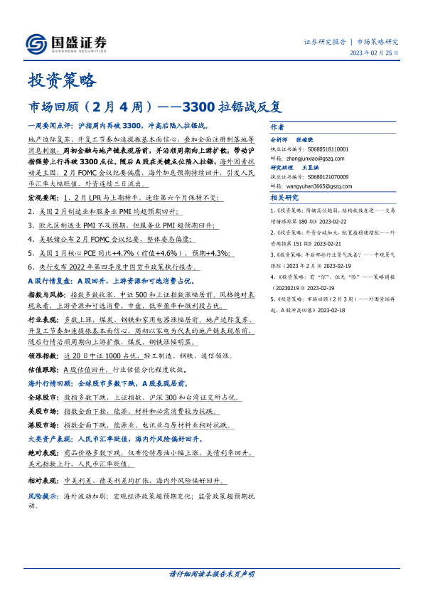 【国盛证券】【20230225】投资策略:市场回顾(2月4周)——3300拉锯战反复-19页