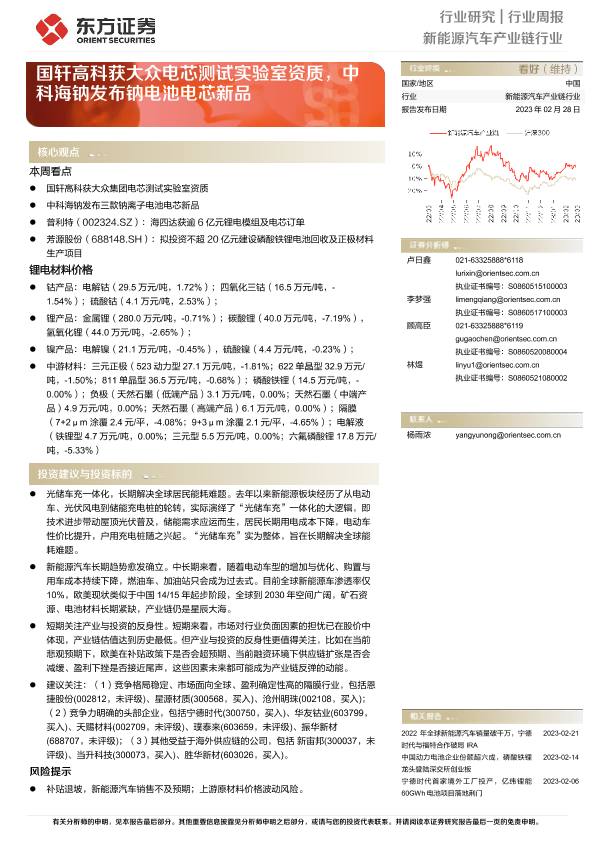 【东方证券】【20230228】新能源汽车产业链行业周报:国轩高科获大众电芯测试实验室资质,中科海钠发布钠电池电芯新品-16页