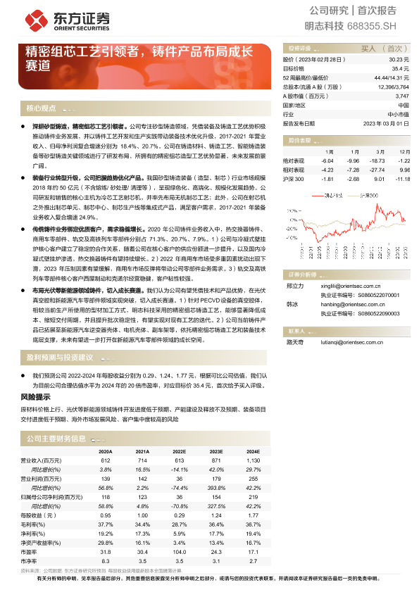 【东方证券】【20230301】明志科技(688355)精密组芯工艺引领者,铸件产品布局成长赛道-29页