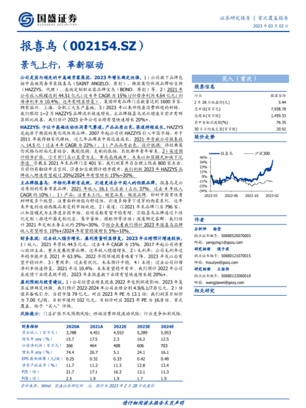 投资建议 男装行业 证券研究 财务分析 首次覆盖