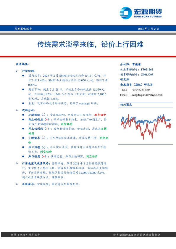 【宏源期货】【20230302】月度策略报告:传统需求淡季来临,铅价上行困难-20页