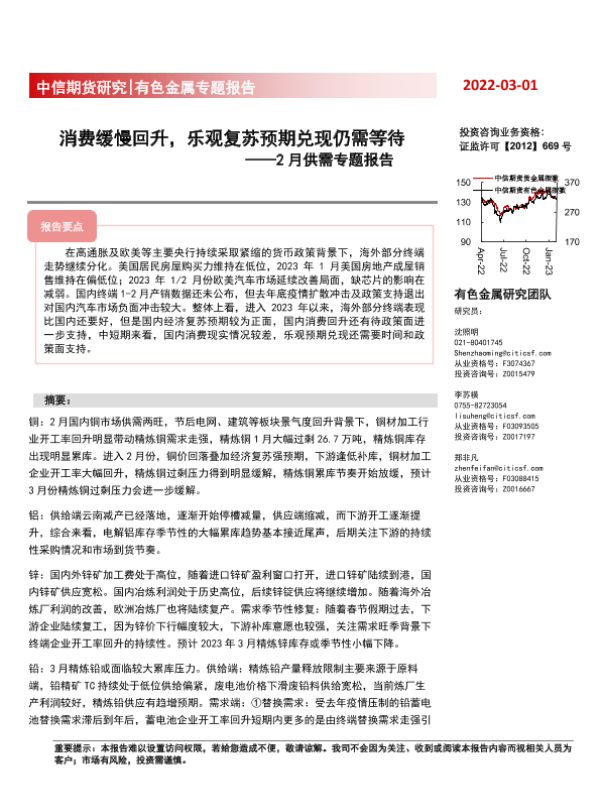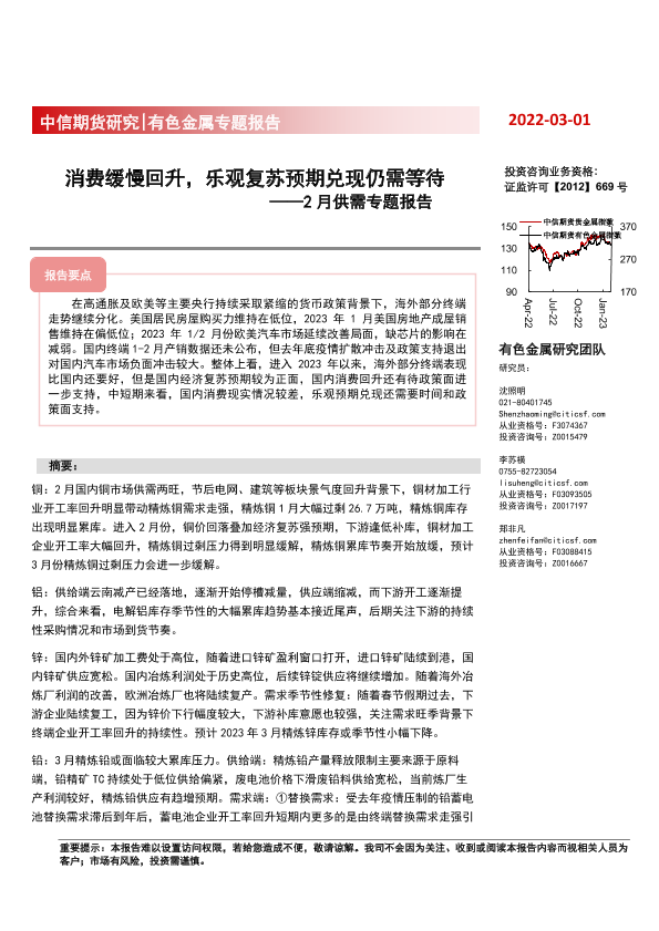 【中信期货】【20230301】有色金属专题报告:2月供需专题报告,消费缓慢回升,乐观复苏预期兑现仍需等待-50页