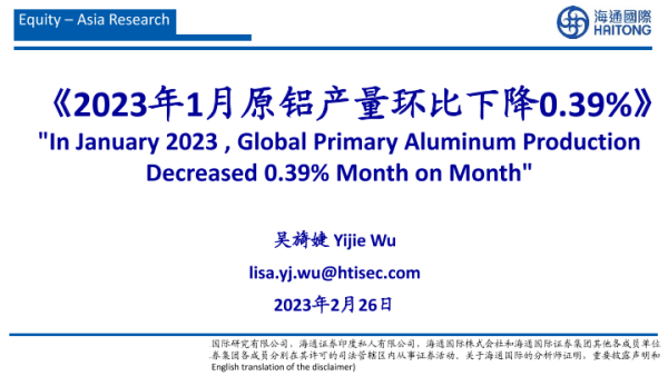 【海通国际】【20230226】2023年1月原铝产量环比下降0.39%-28页