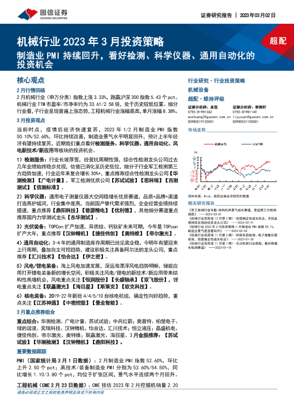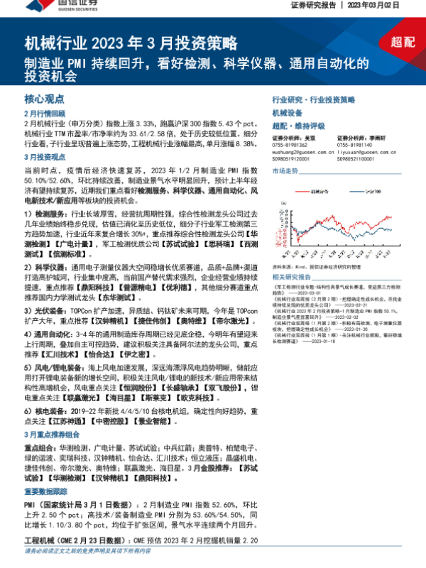 【国信证券】【20230302】机械行业2023年3月投资策略:制造业PMI持续回升,看好检测、科学仪器、通用自动化的投资机会-24页