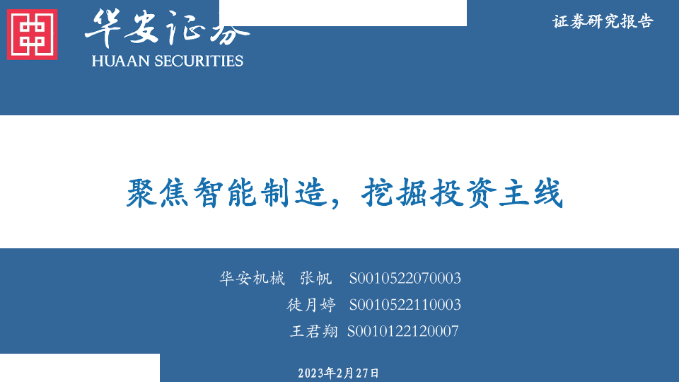 【华安证券】【20230227】机械行业:聚焦智能制造,挖掘投资主线-46页