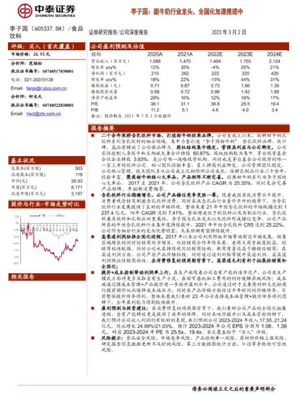 【中泰证券】【20230302】李子园(605337):甜牛奶行业龙头,全国化加速推进中-31页