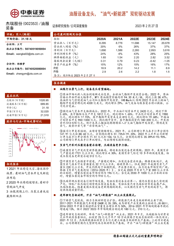【中泰证券】【20230227】杰瑞股份(002353)油服设备龙头,“油气+新能源”双轮驱动发展-32页