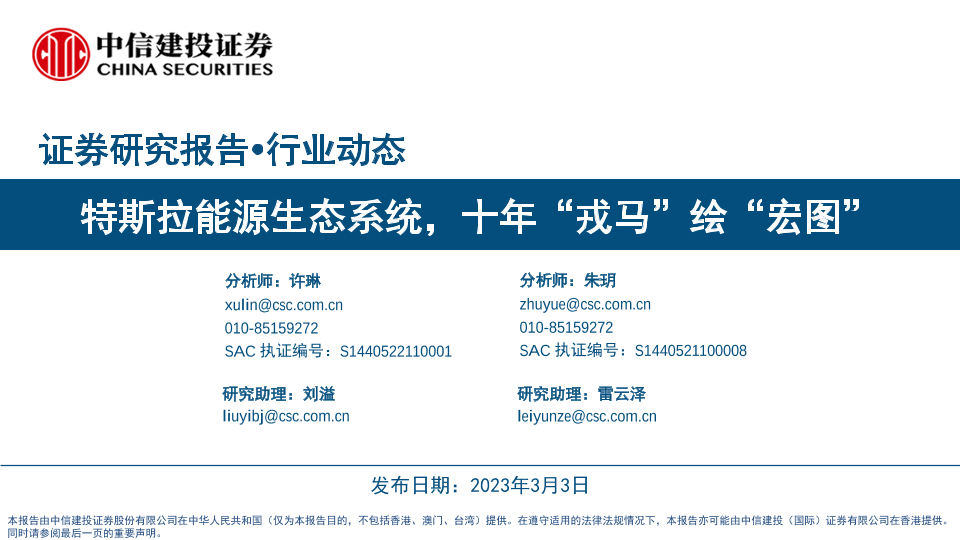 【中信建投证券】【20230303】汽车行业:特斯拉能源生态系统,十年“戎马”绘“宏图”-43页