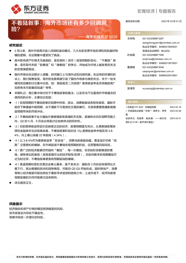 【东方证券】【20230301】不着陆叙事:海外市场还有多少回调风险?-20页