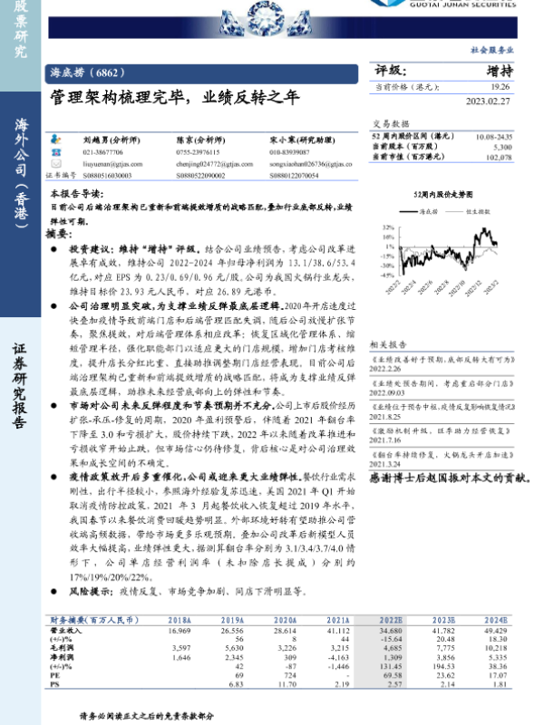 【国泰君安证券】【20230227】海底捞06862.HK管理架构梳理完毕,业绩反转之年-25页