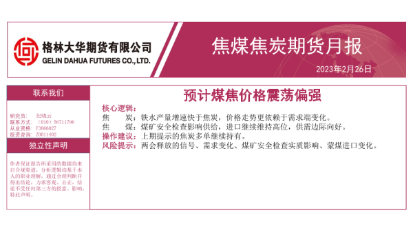 【格林大华期货】【20230226】焦煤焦炭期货月报:预计煤焦价格震荡偏强-15页