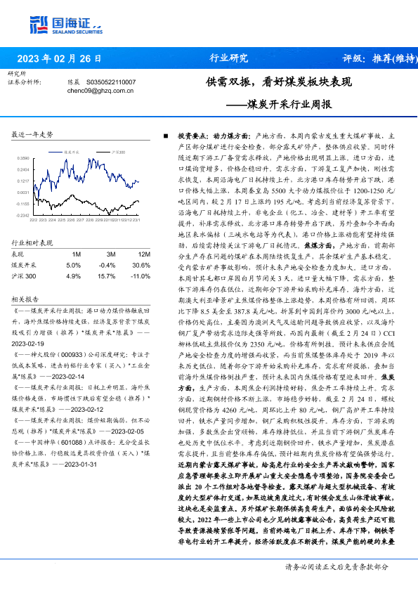 【国海证券】【20230226】煤炭开采行业周报:供需双振,看好煤炭板块表现-21页