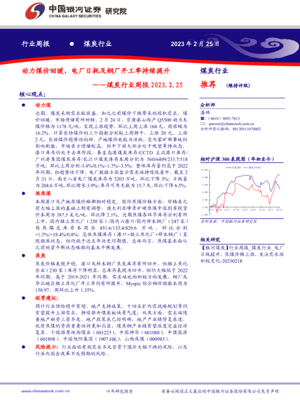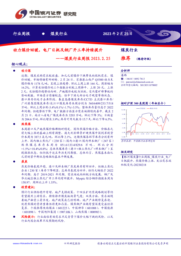 【银河证券】【20230225】煤炭行业周报:动力煤价回暖,电厂日耗及钢厂开工率持续提升-20页