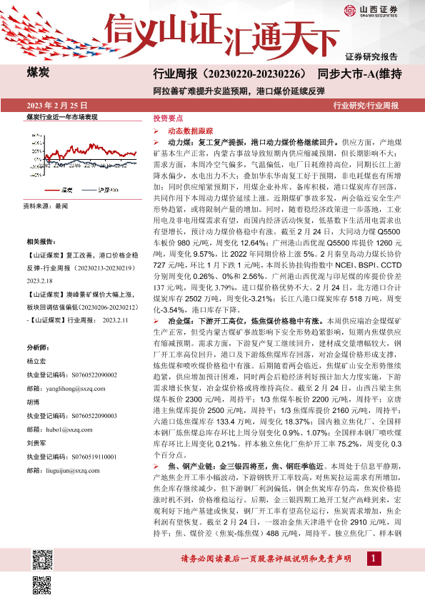 【山西证券】【20230225】煤炭行业周报:阿拉善矿难提升安监预期,港口煤价延续反弹-19页