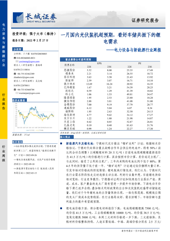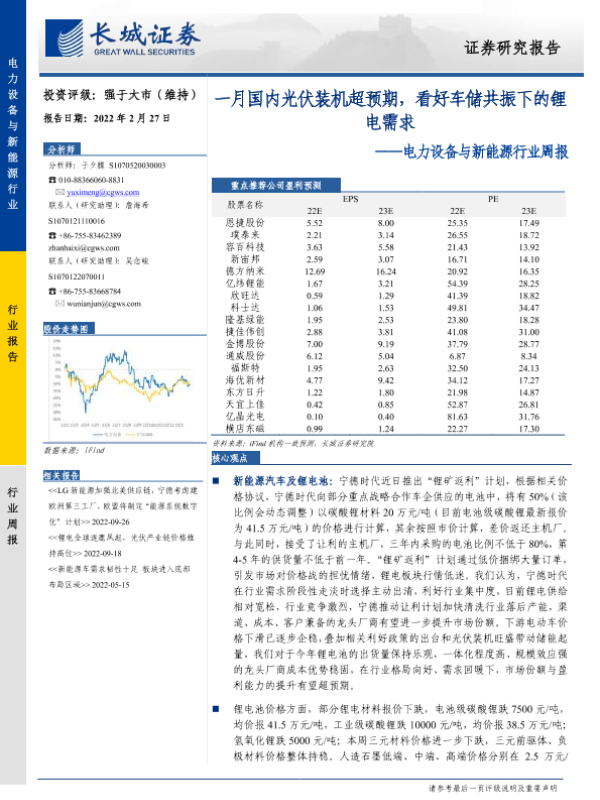 【长城证券】【20230227】电力设备与新能源行业周报:一月国内光伏装机超预期,看好车储共振下的锂电需求-15页
