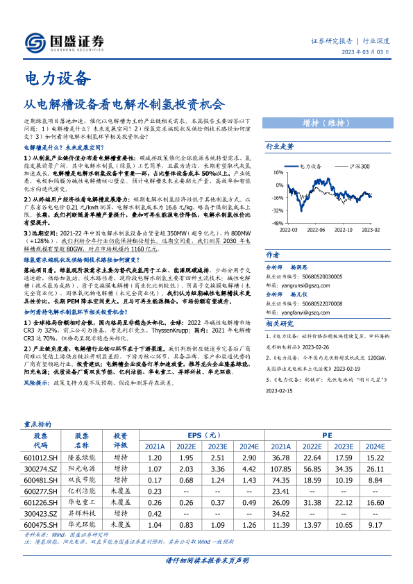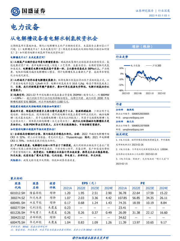 【国盛证券】【20230303】电力设备行业深度:从电解槽设备看电解水制氢投资机会-18页
