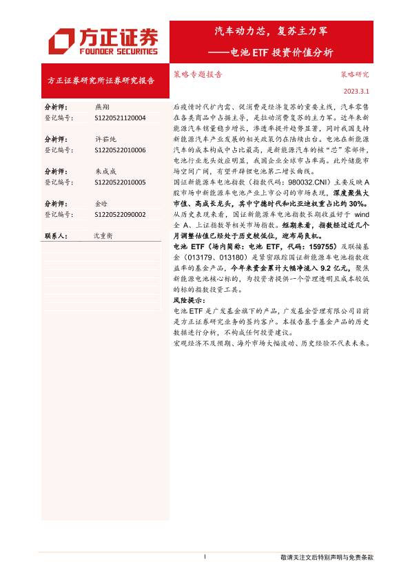 【方正证券】【20230301】电池ETF投资价值分析:汽车动力芯,复苏主力军-15页