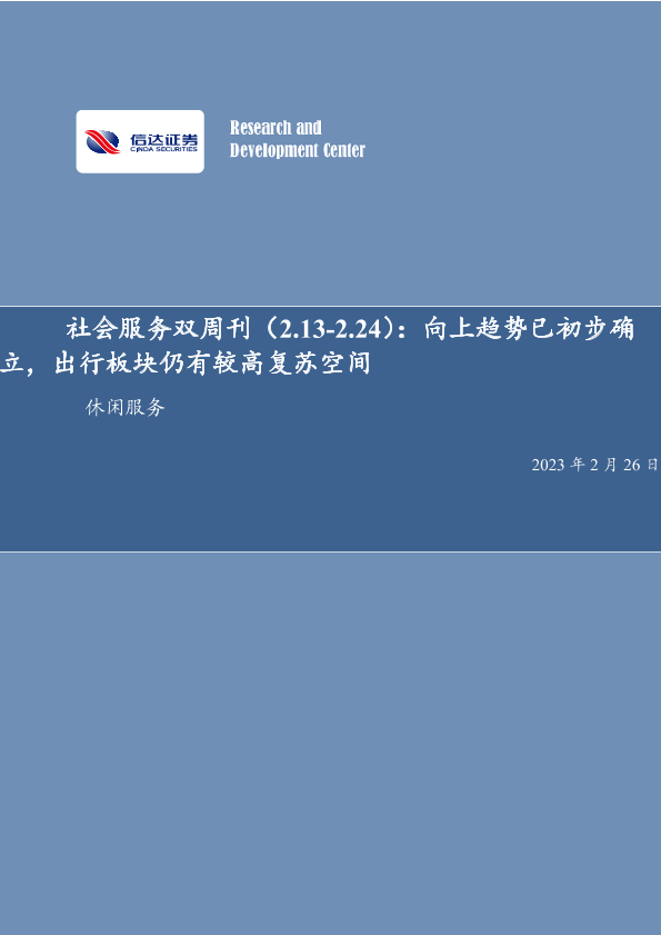 【信达证券】【20230226】社会服务双周刊:向上趋势已初步确立,出行板块仍有较高复苏空间-20页