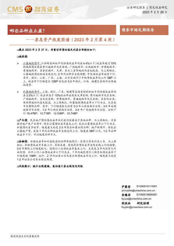 【海通证券】【20230228】票息资产热度图谱(2023年2月第4周):哪些品种在止盈?-18页