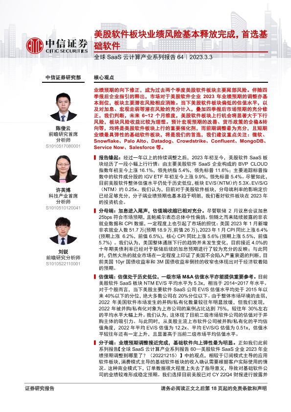 【中信证券】【20230303】美股软件板块业绩风险基本释放完成,首选基础软件-19页