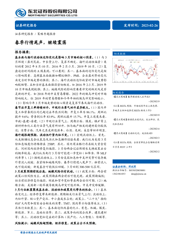 【东北证券】【20230226】策略专题报告:春季行情尾声,继续震荡-27页
