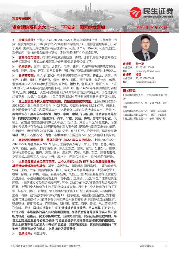 【民生证券】【20230227】策略专题研究:资金跟踪系列之六十一:“不安定”因素继续增加-36页