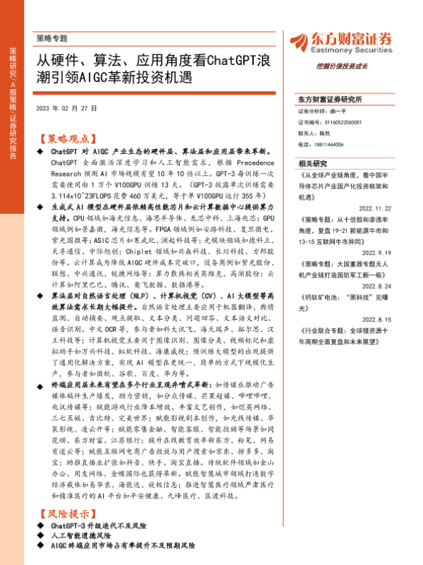 【东方财富证券】【20230227】策略专题:从硬件、算法、应用角度看ChatGPT浪潮引领AIGC革新投资机遇-71页