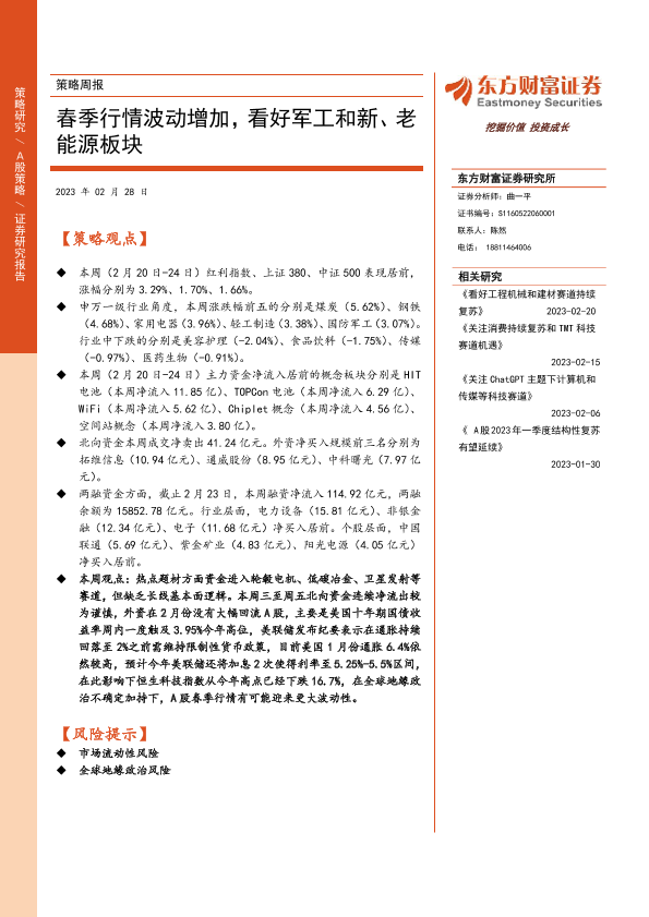 【东方财富证券】【20230228】策略周报:春季行情波动增加,看好军工和新、老能源板块-15页