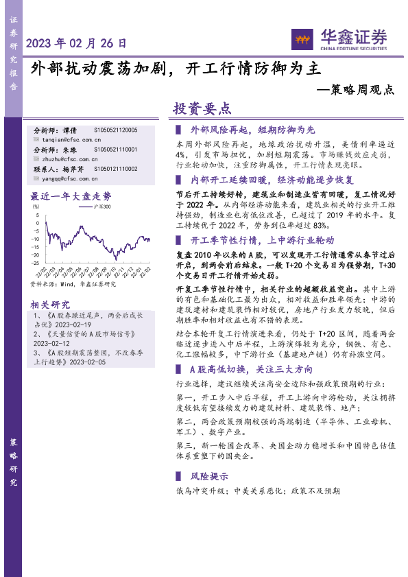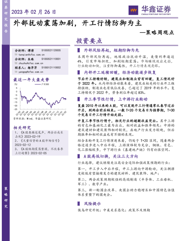 【华鑫证券】【20230226】策略周观点:外部扰动震荡加剧,开工行情防御为主-19页
