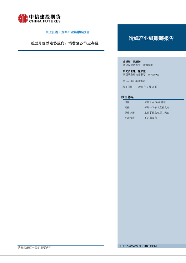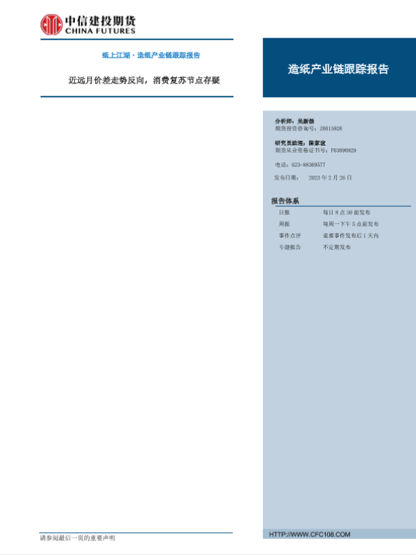 【中信建投期货】【20230226】纸上江湖·造纸产业链跟踪报告:近远月价差走势反向,消费复苏节点存疑-16页
