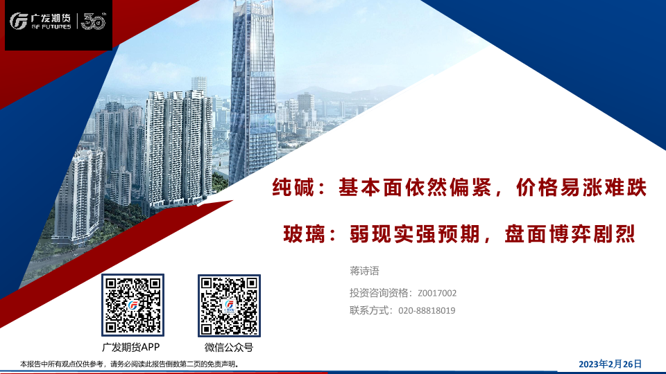 【广发期货】【20230226】纯碱:基本面依然偏紧,价格易涨难跌,玻璃,弱现实强预期,盘面博弈剧烈-44页