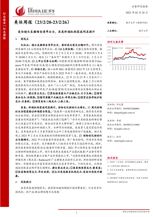 【国联证券】【20230226】美妆行业周报:美妆超头直播预告清单出台,医美终端机构客流明显提升-15页