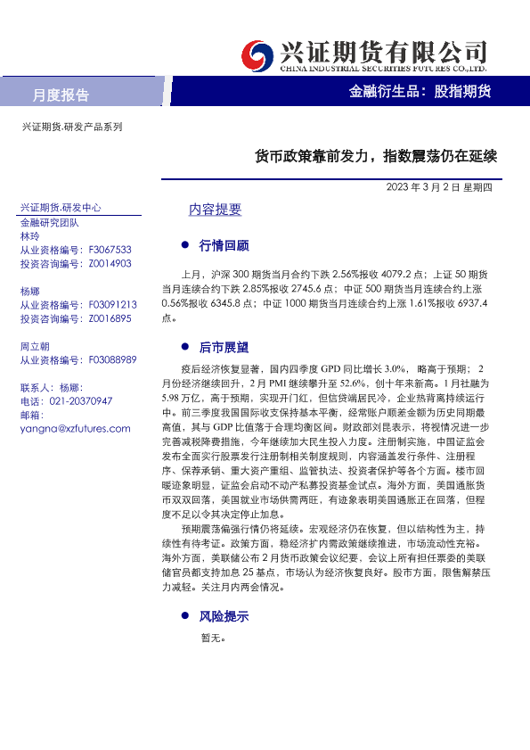【兴证期货】【20230302】股指期货月度报告:货币政策靠前发力,指数震荡仍在延续-16页