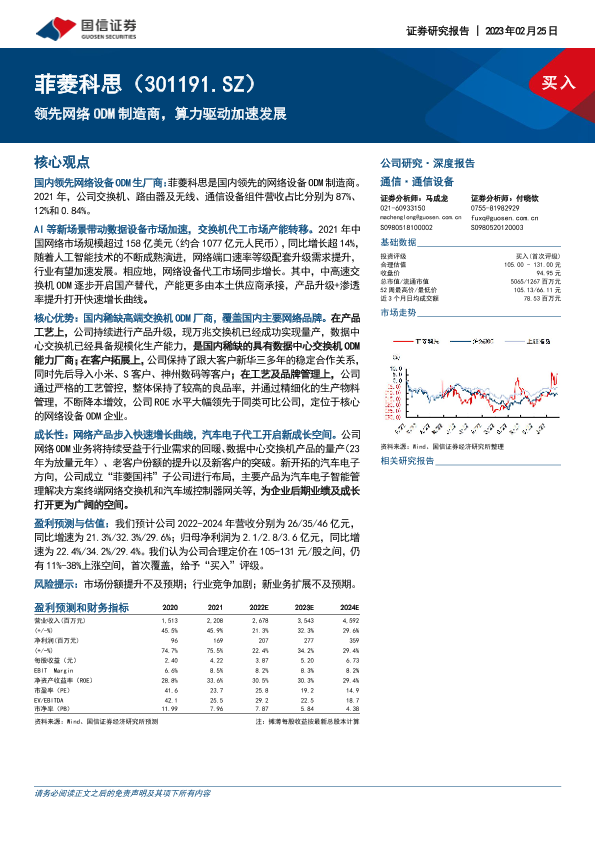 【国信证券】【20230225】菲菱科思301191.SZ领先网络ODM制造商,算力驱动加速发展-37页
