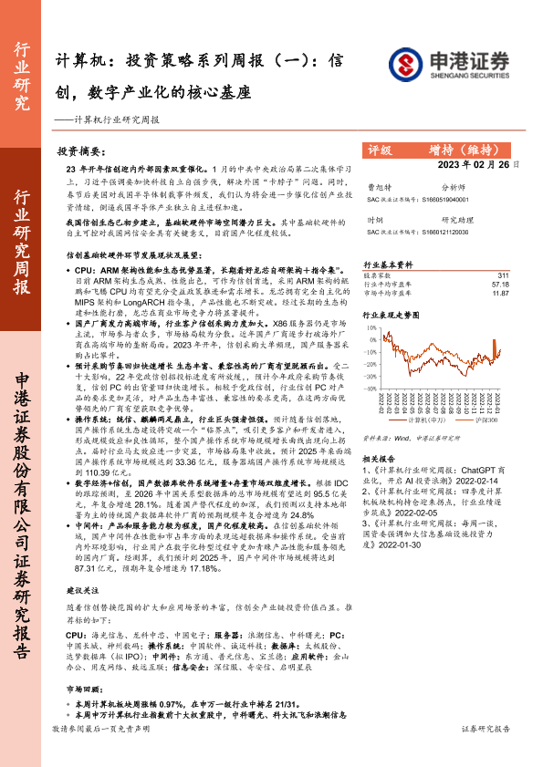 【申港证券】【20230226】计算机行业研究周报:投资策略系列周报(一):信创,数字产业化的核心基座-17页