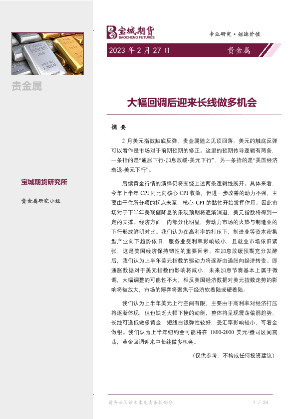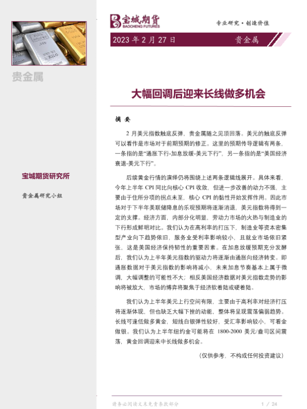 【宝城期货】【20230227】贵金属月报:大幅回调后迎来长线做多机会-16页