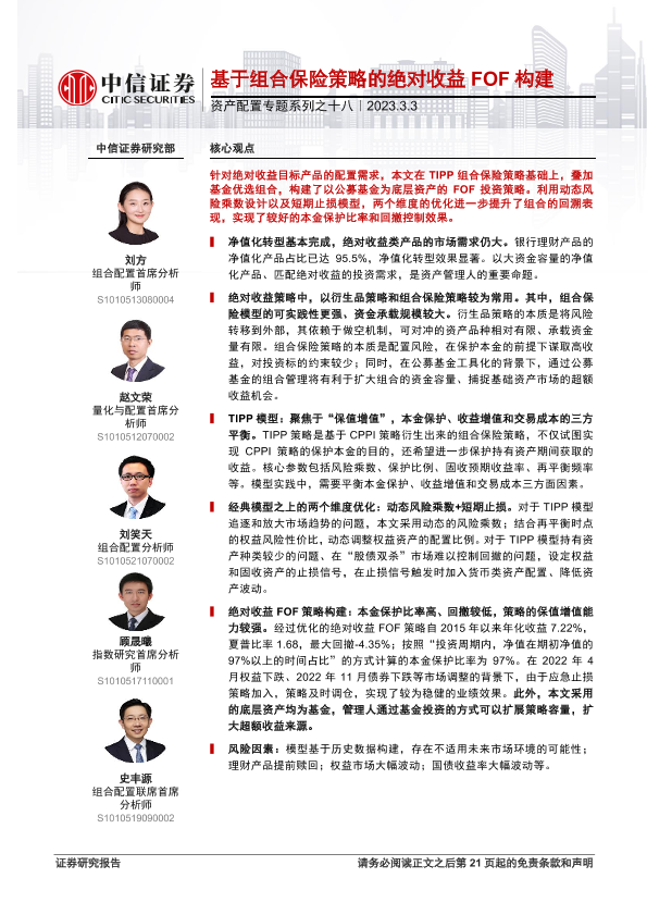 【中信证券】【20230303】资产配置专题系列之十八:基于组合保险策略的绝对收益FOF构建-22页
