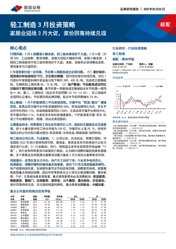【国信证券】【20230302】轻工制造3月投资策略:家居业迎战3月大促,浆价回落持续兑现-27页