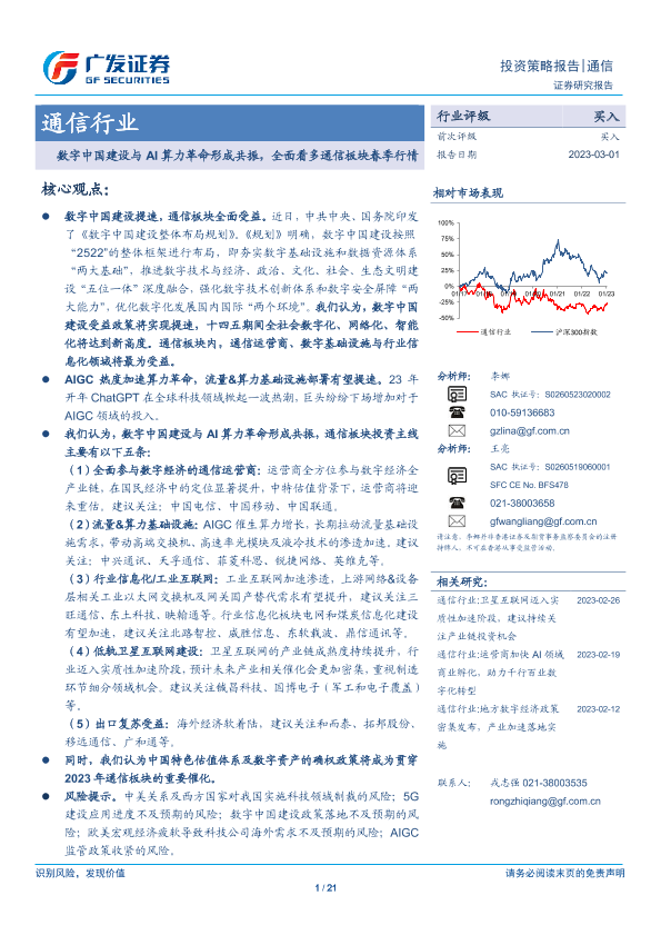【广发证券】【20230301】通信行业:数字中国建设与AI算力革命形成共振,全面看多通信板块春季行情-21页