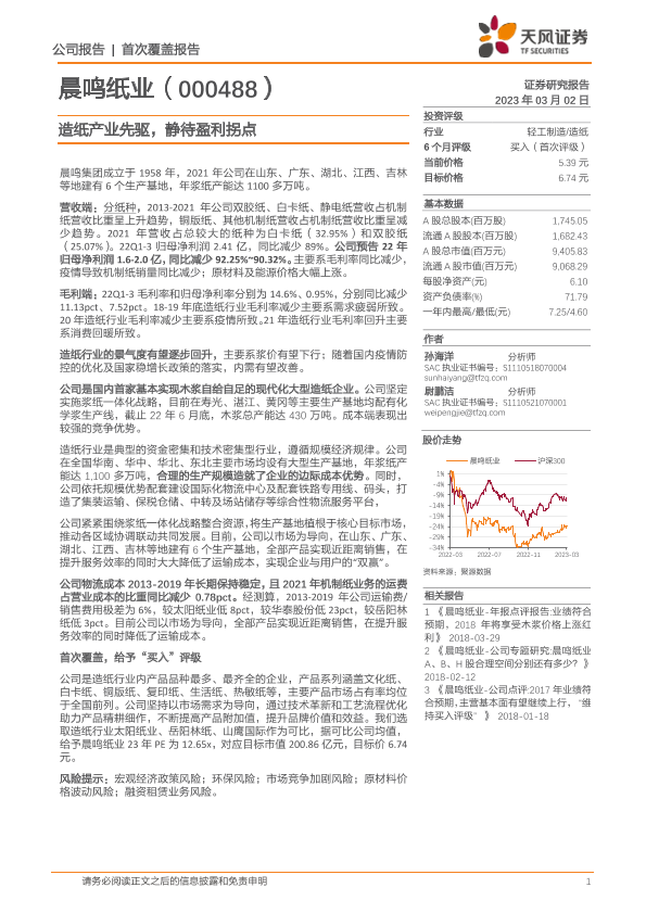 【天风证券】【20230302】造纸产业先驱,静待盈利拐点-17页