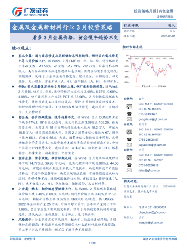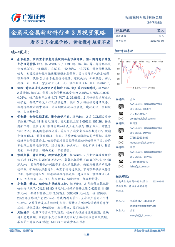 【广发证券】【20230301】金属及金属新材料行业3月投资策略:看多3月金属价格,黄金慢牛趋势不变-26页