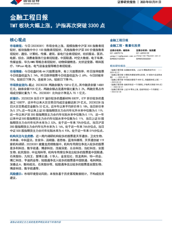 【国信证券】【20230301】金融工程日报:TMT板块大幅上涨,沪指再次突破3300点-16页